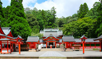 古くは紫尾山三所権現と言われ、源実朝が奉納したと伝えられる3面の大鏡が御神体として祀られています。また紫尾温泉の泉源がこの神社の拝殿の下にあります。この地域の鎮守神として初詣には1万人ぐらいの人出で賑わいます。